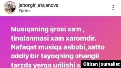 10 декабря 42-летний известный певец из Узбекистана Джахонгир Атаджанов объявил на своей странице в Instagram’е, что «прекращает свою певческую карьеру из-за того, что это «противоречит законам шариата».