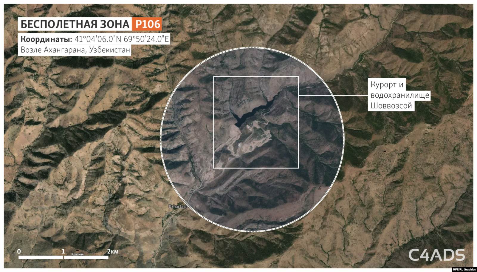 Всего в Узбекистане шесть таких бесполетных зон, согласно анализу аэронавигационных данных, проведенному Озодликом и вашингтонской некоммерческой исследовательской группой C4ADS.