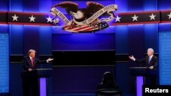 В ночь на 23 октября в США проходят последние дебаты кандидатов в президенты перед выборами. Действующий президент Дональд Трамп и его соперник от Демократической партии Джо Байден сойдутся в штате Теннесси. Телеканал "Настоящее Время" ведет трансляцию их словесного поединка в прямом эфире с синхронным переводом на русский язык начиная с 3:45 в пятницу по Москве и Киеву.
